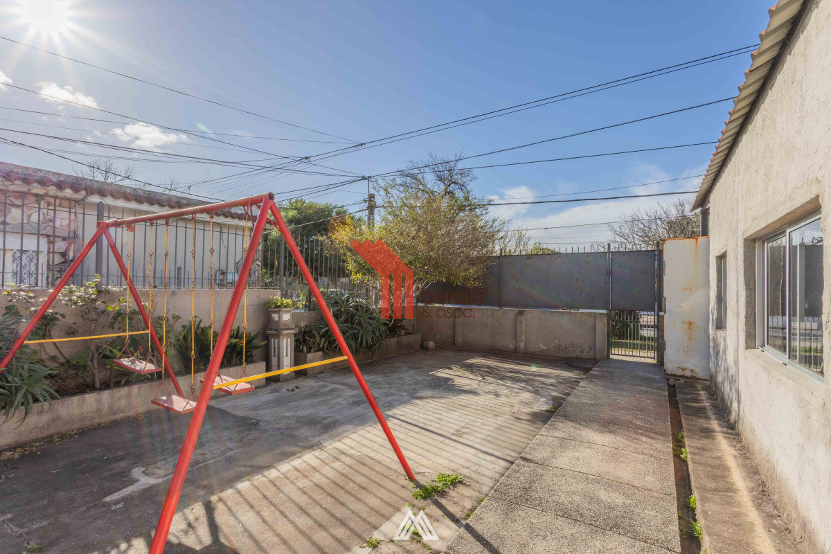 Espacios exteriores: patio privado al fondo con parrillero semi cubierto, patio al frente con juegos infantiles.